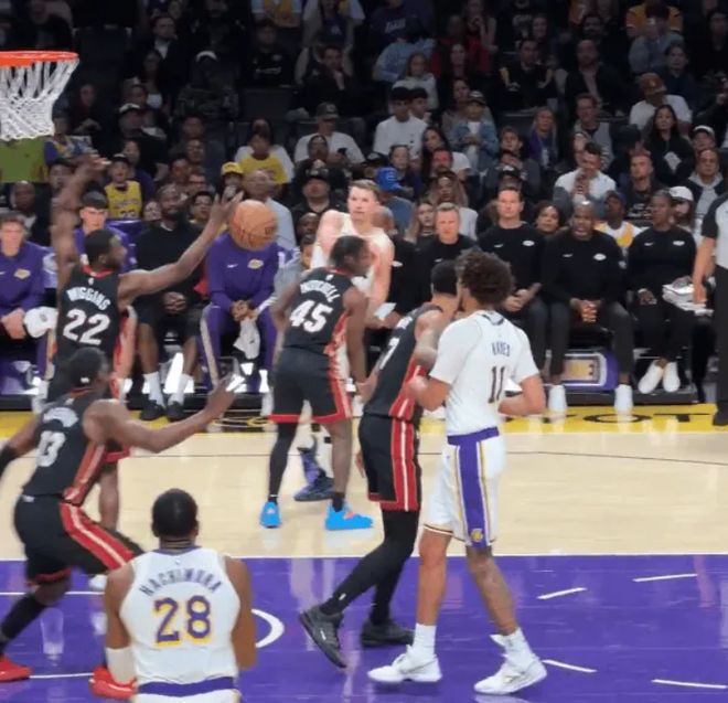 次節回來,哈克斯反擊接球,突破雙手暴扣已砍下12分,隨後故技重施快攻慢三步上籃,斯馬特精準判斷追身大帽扇飛,這球有點詹姆斯當初追防一哥的影子。東契奇人縫當中上籃打進,接著追身三分再中,一人連得7分打停熱火。暫停回來,熱火進攻受阻防守同樣拉胯,拉拉維亞突分跳起傳球,裏夫斯大空位三分再投進,湖人將分差拉開至18分。豐特切奧和阿德巴約連中三分,半場戰罷,熱火63-77依舊落後湖人14分。