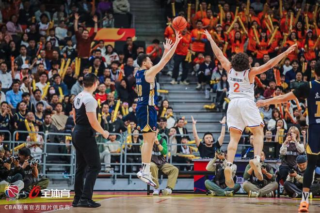 雖然大比分落後,但主場作戰的廣東隊顯然不願讓比賽就此定局。第三節一上來,球隊便在攻防兩端展現出極高的專注度。薩姆納裏突外投砍下8分逼迫對手暫停。暫停並未能阻擋廣東隊的追擊勢頭,球隊繼續利用壓迫式防守使得對方陷入得分荒,同時自身外線炮台火力全開,一波波淩厲進攻接連上演,讓人熱血沸騰。胡明軒、奎因三分遠射應聲入網,杜潤旺彈無虛發兩記三分將全場氛圍推向高潮,廣東隊憑借三分線外6投6中的火熱手感強勢打出一波24-8,將比分迫近至僅差5分!可惜節末上海隊借助洛夫頓的發揮穩住陣腳,重建兩位數優勢,59-71,廣東隊落後12分。