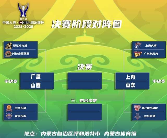 CBA俱樂部杯四強塵埃落定,一場場驚心動魄的對決,點燃了新賽季的激情火花!上海、山東、廣廈、山西四強出爐,半決賽對陣正式揭曉:2月8日晚上19:35,上海男籃 vs 山東男籃,2月9日晚上19:35,廣廈男籃 vs 山西男籃,冠軍獎金高達200萬元,亞軍140萬,季軍100萬,第四名70萬,每一場都是榮譽與真金白銀的終極博弈!