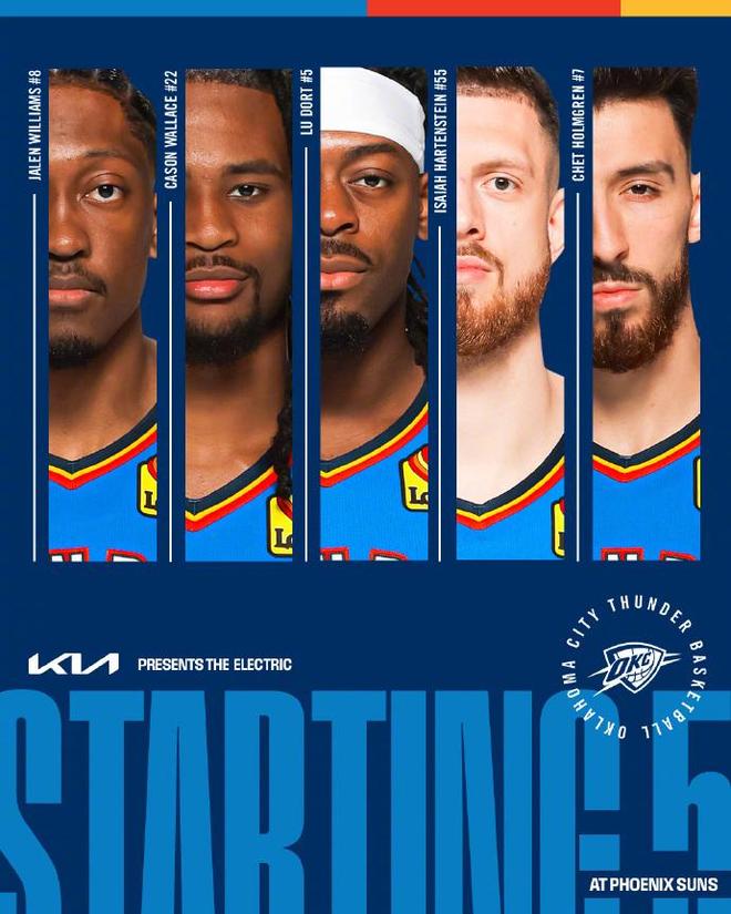 雷霆:傑倫·威廉姆斯12中11(前11中11)得到28分4板5助、喬21分1板1助、肯裏奇·威廉姆斯15分6板2助、霍姆格倫13分4板2助、麥凱恩12分4板1助2斷、維金斯12分3板2助2斷、傑林·威廉姆斯11分6板5助3帽。