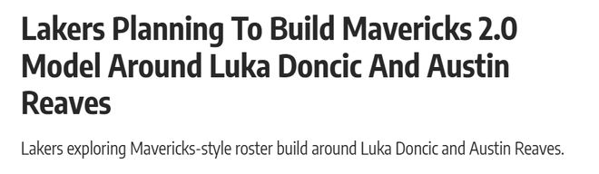 馬尼克斯報道稱,湖人正在研究獨行俠當年衝進總決賽的成功模式,試圖圍繞東契奇和裏夫斯複製其核心陣容要素。
