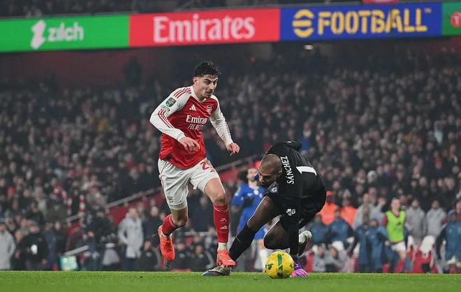酋長球場的計時器指向補時階段,夜空驟然被呐喊撕裂——哈弗茨一記冷靜的單刀推射,將比分定格為1-0。阿森納以總比分4-2雙殺切爾西,時隔八年再度挺進聯賽杯決賽。這一夜,槍手球迷陷入瘋狂,而客隊教練席上,41歲的羅塞尼爾雙手掩麵,獨自吞下執教切爾西以來的第二場失利——兩場皆拜阿森納所賜。