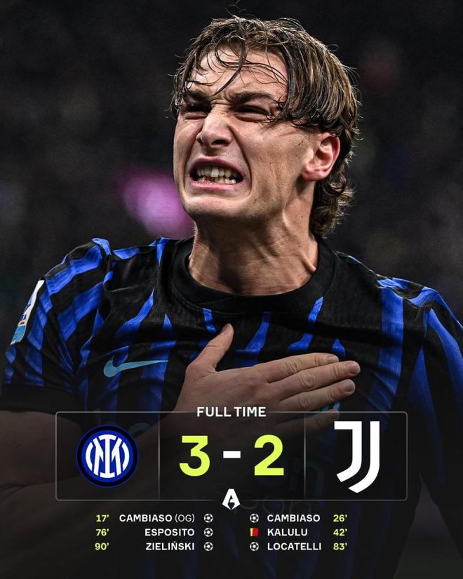 易邊再戰,第76分鍾,迪馬爾科左路傳中,埃斯波西托力壓防守頭球破門,國際米蘭2-1再度反超。